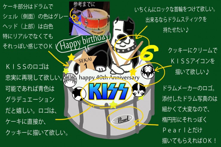 今回は、KISSのデビュー 40周年アニバーサリーも一緒にお祝いするケーキデザインです。