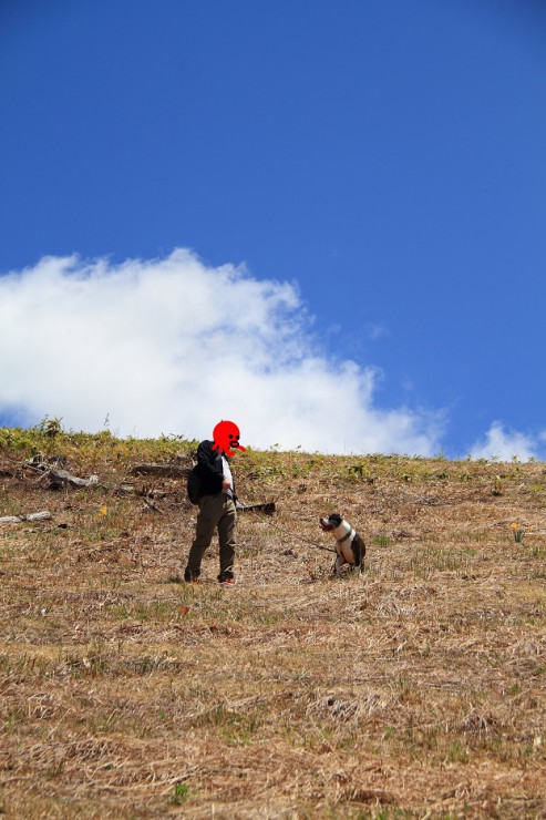 丘の頂上への道をショートカットをしようと、皆と離れて坂がキツイ方に向かって進んで行くので、