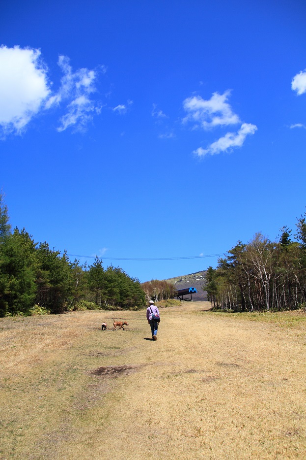 目指す方向の先を、常にイヌ達を従え歩く さくら父。