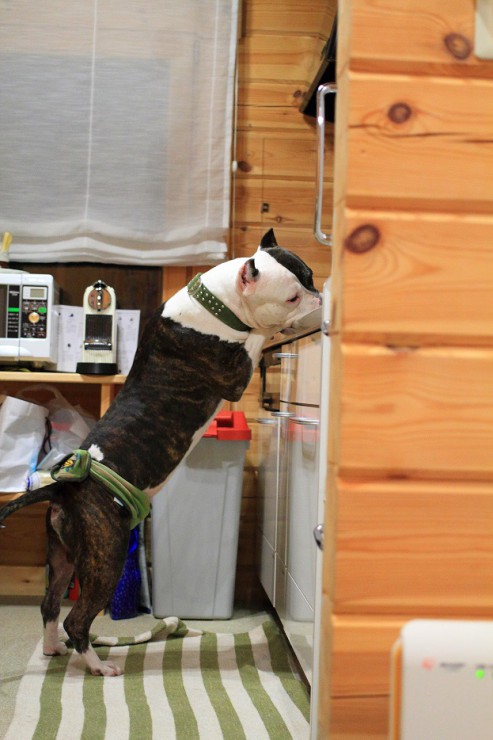 いちくんは台所やテーブルの上を覗き込み、食べ物を物色(´-ω-`)