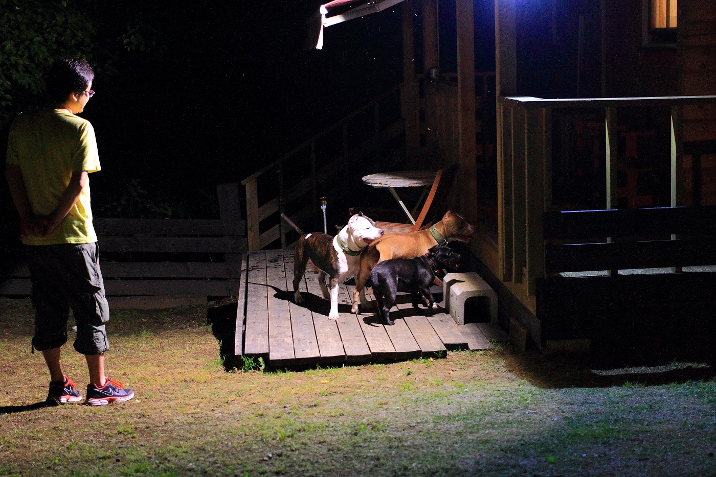 夜の庭は、ちゃんと照明がついているので、イヌ達の姿が見えて安心でした♪