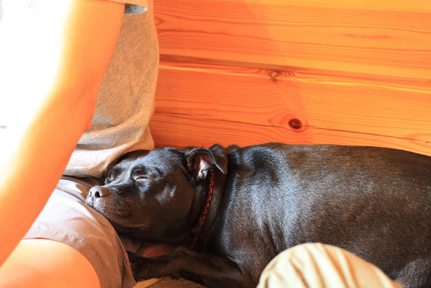 朝のお散歩を済ませたのに、まだまだ おねむ のさくらさんを横に、