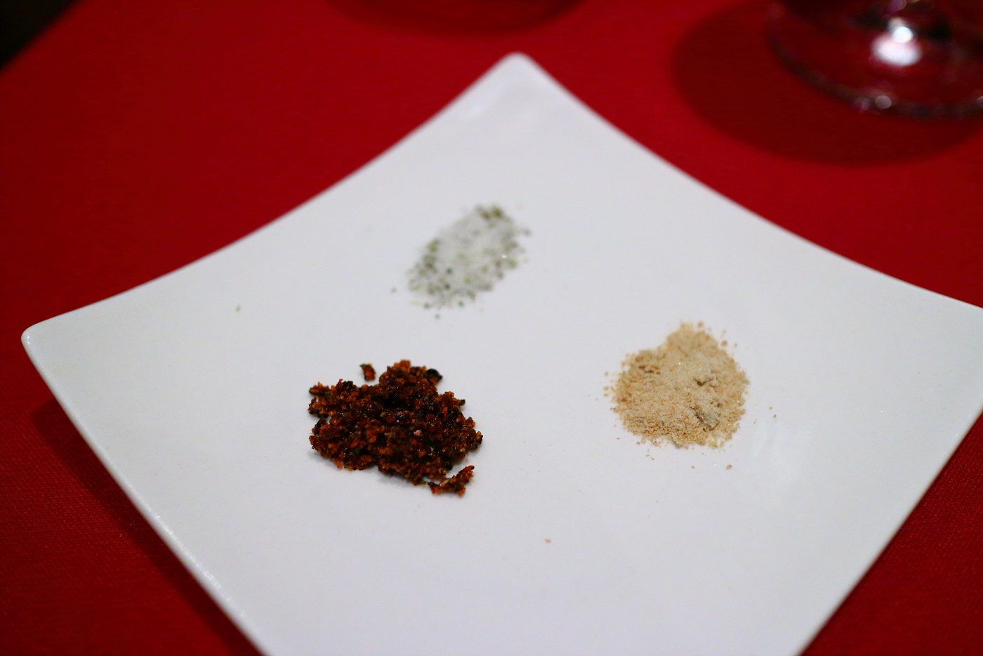 山葵醤油風味パウダーと、山椒塩、山梨名物「辛味」、