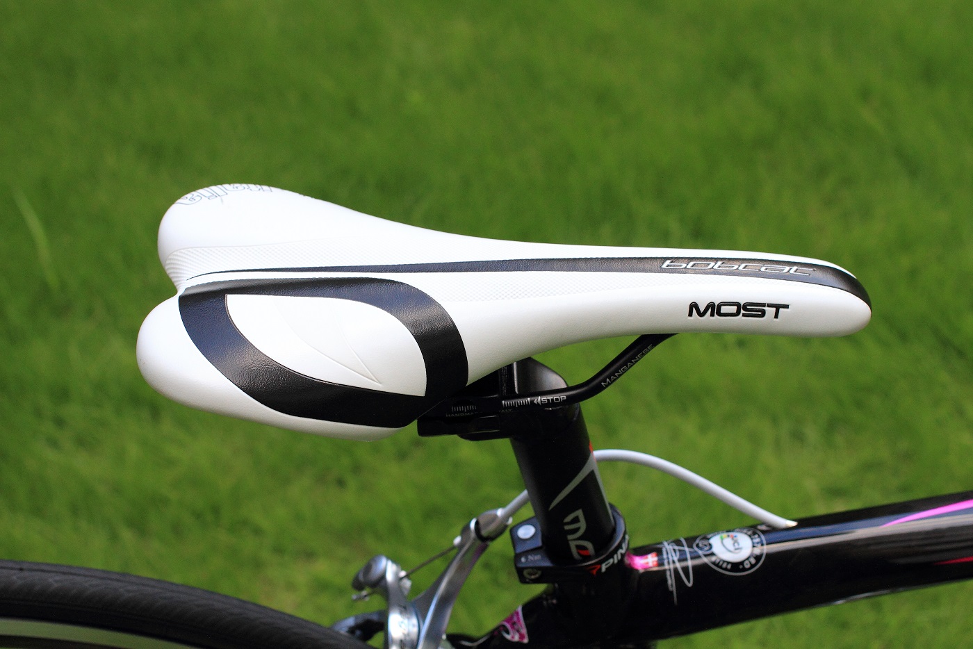 少々硬くて幅も狭いので女性向ではなく、ロングライドだとお尻が痛くなるかも・・・。