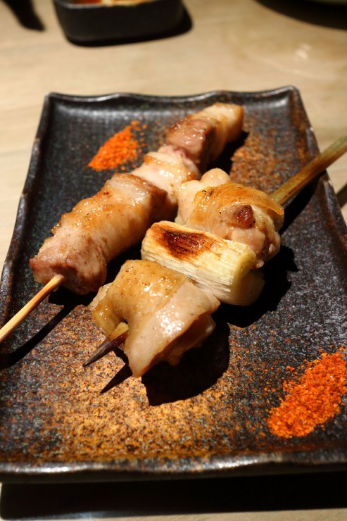 セット内容は、博多地鶏ももと、糸島産豚バラ串