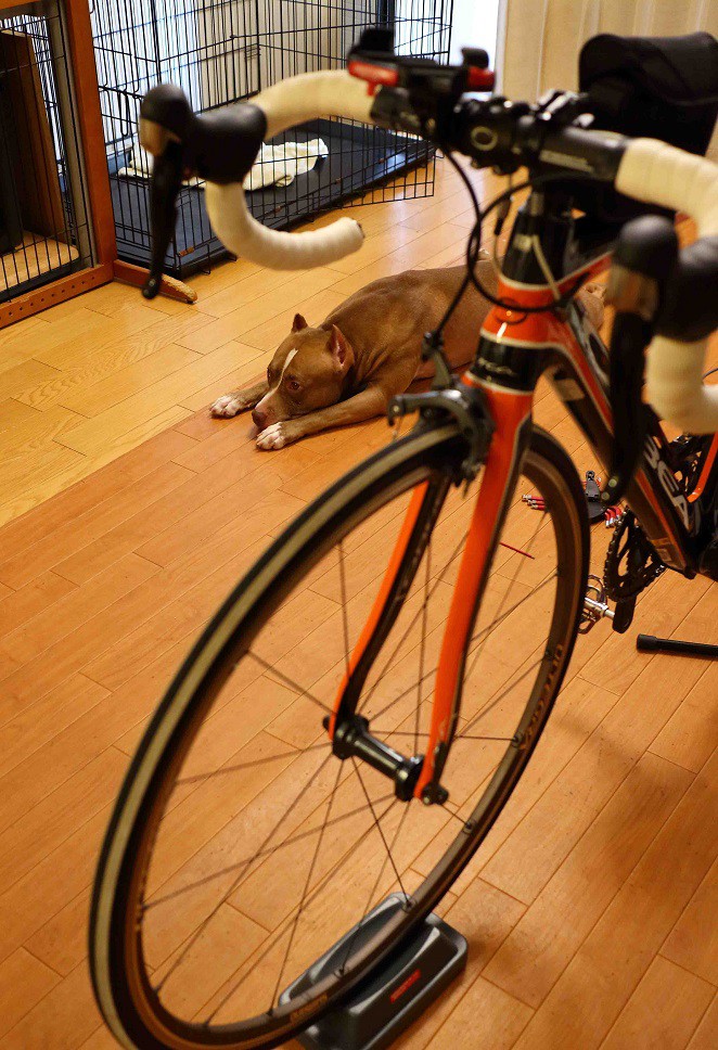 もう一台の自転車はPC部屋に立て掛けていますが、こちらも無傷、無関心。