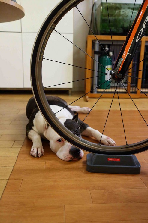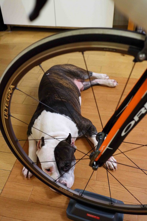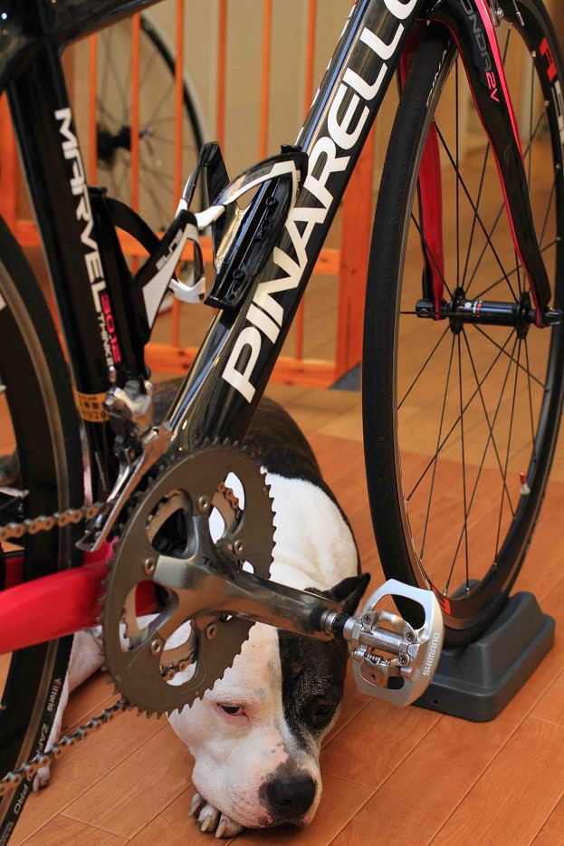 自転車のタイヤ部分なんて、イヌ達の好きそうな素材で出来てますんで、