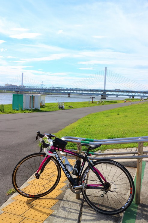 川の反対側にあるサイクリングロードを目指す為、途中、「清砂大橋」を渡ります。