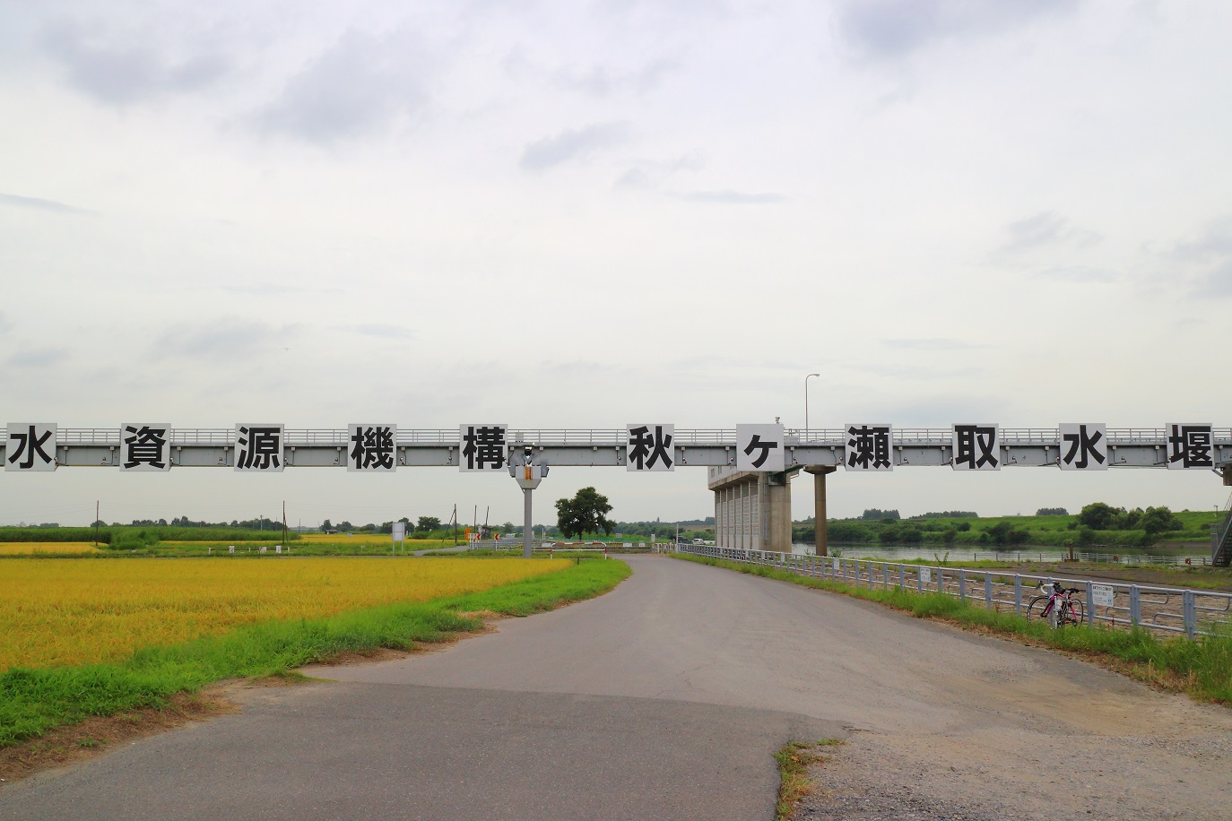 田んぼが あったのは、水門から約3km程先の「秋ヶ瀬取水堰」横でした~。