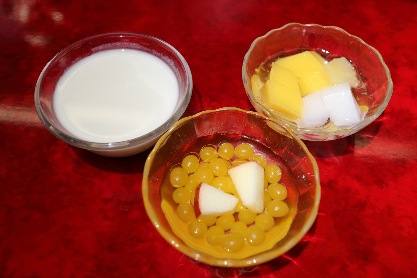 最後のデザートでは、プチプチ食感の何か良く分からないものを食べました。
