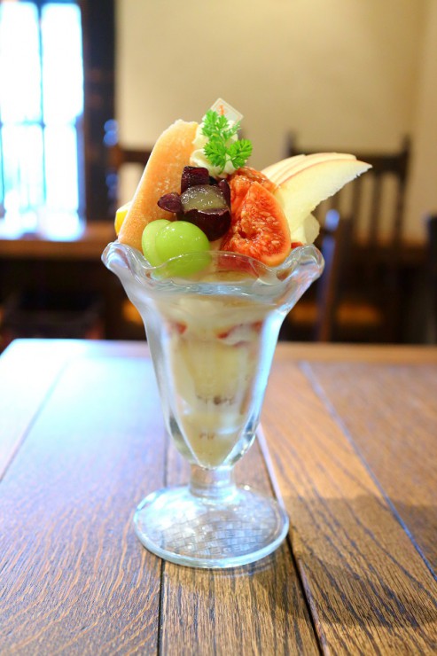 TAKOさんは、ぶどう+秋のフルーツ盛りだくさんの、オータムフルーツパフェを注文。