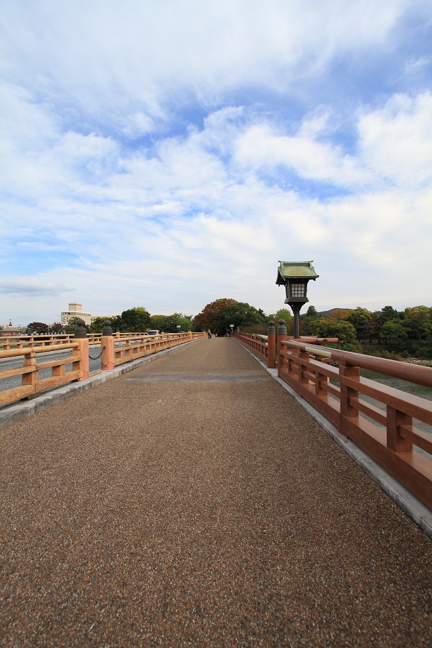 少し歩くと、旭川に架かる橋が見える。