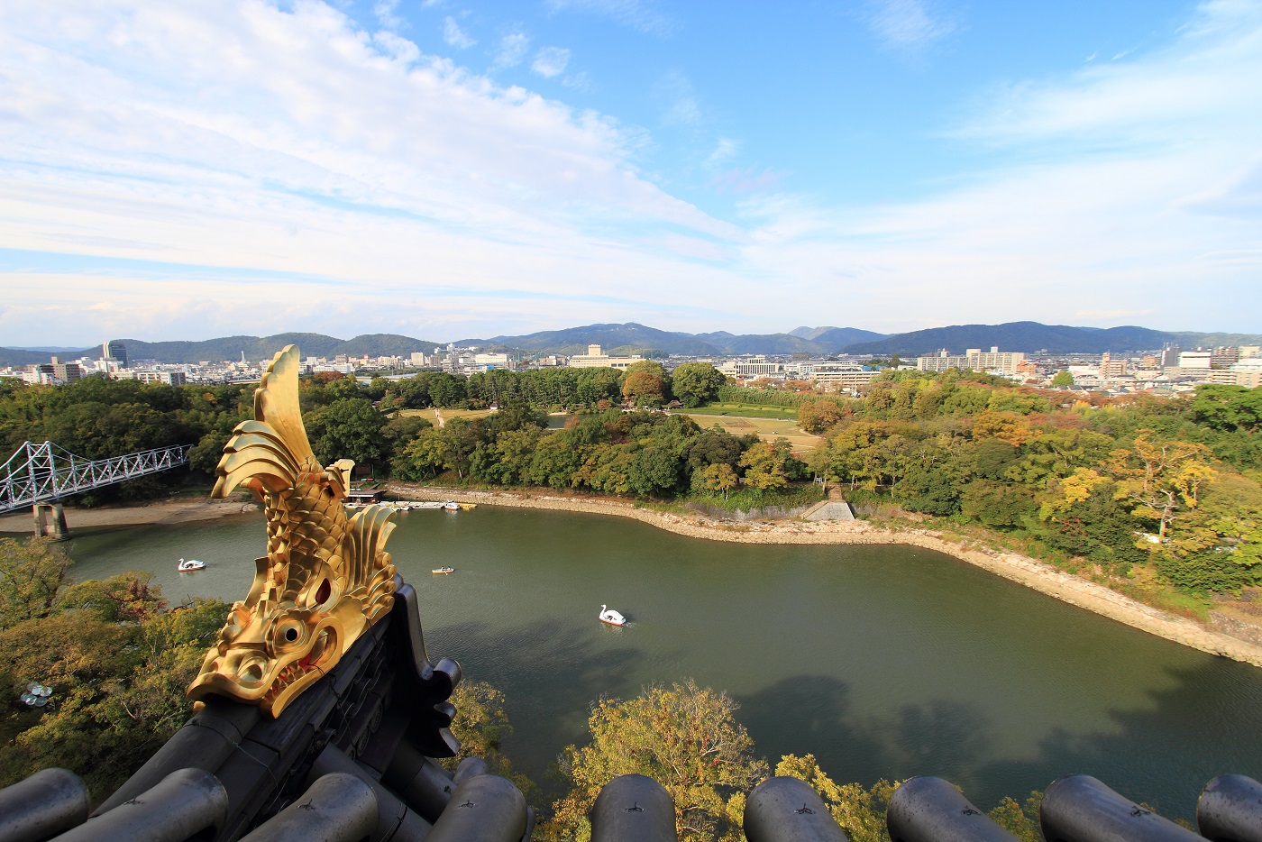 天守の一番上では、眼下に広がる、岡山市内の街を360° 見渡してきました^^