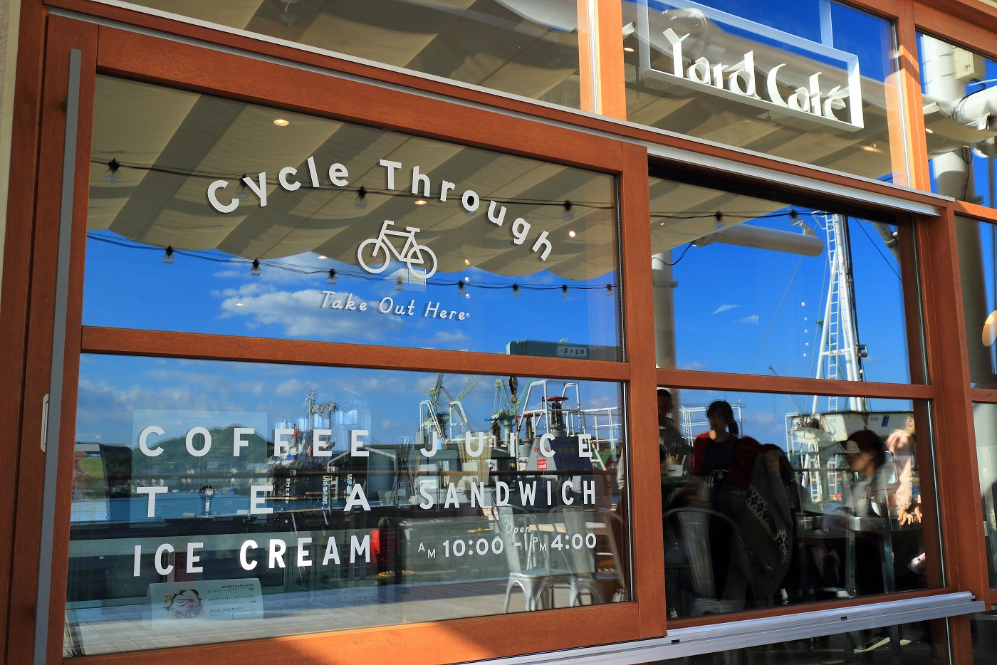 その他にも、建物の内部にあるカフェは、自転車から離れずとも利用できる、サイクル スルーも有り、