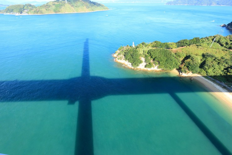 周りに広がる海や島の大きさと比べても、橋の影の大きいこと!!