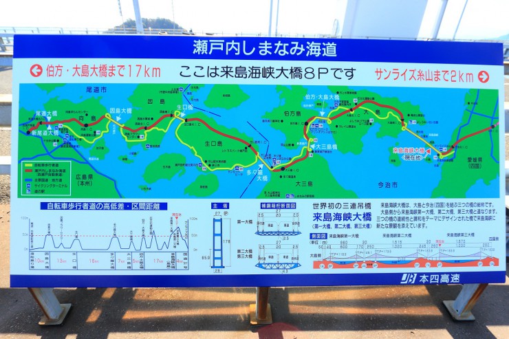 ところで、しまなみ海道の 今治から尾道までの道のりを、どうやって迷わず進んでいるのかというと、