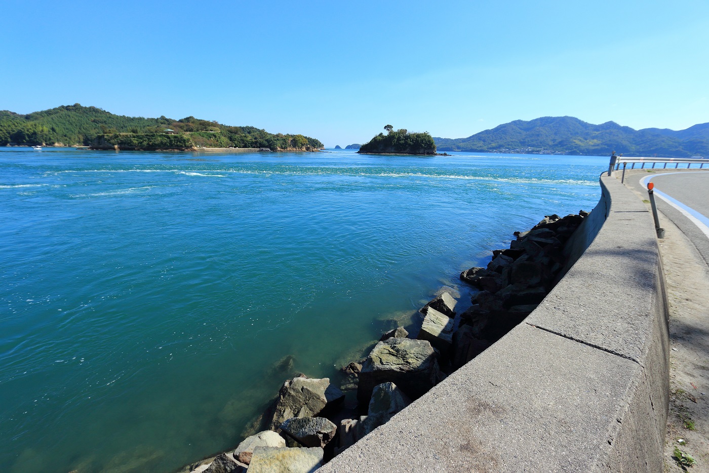 よしうみ いきいき館を出発し、次なる島を目指し走る。
