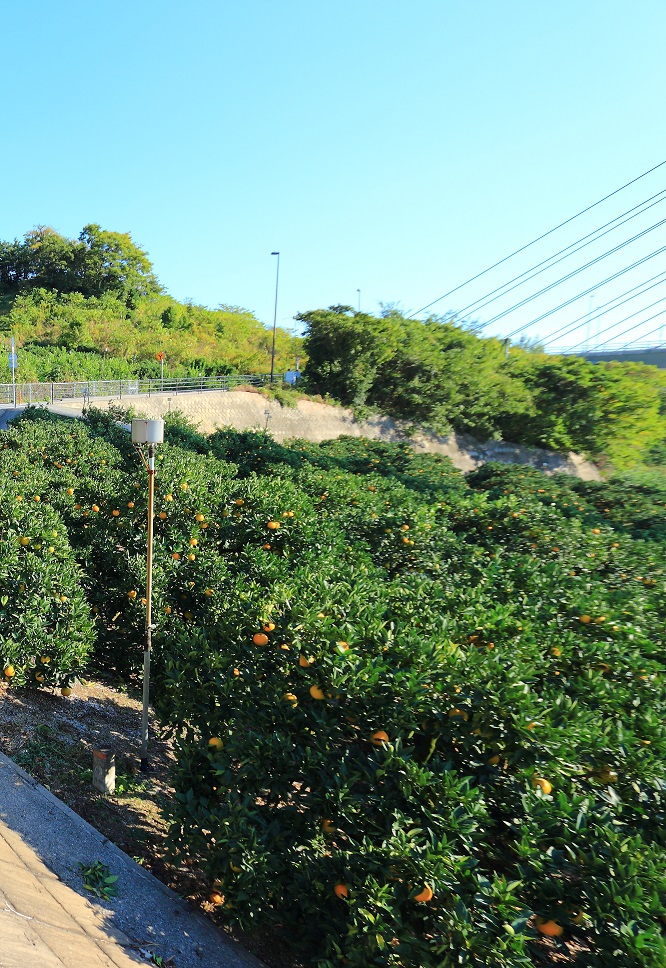 橋を下りる自転車道は柑橘系の畑が広がる のどかな道でした。