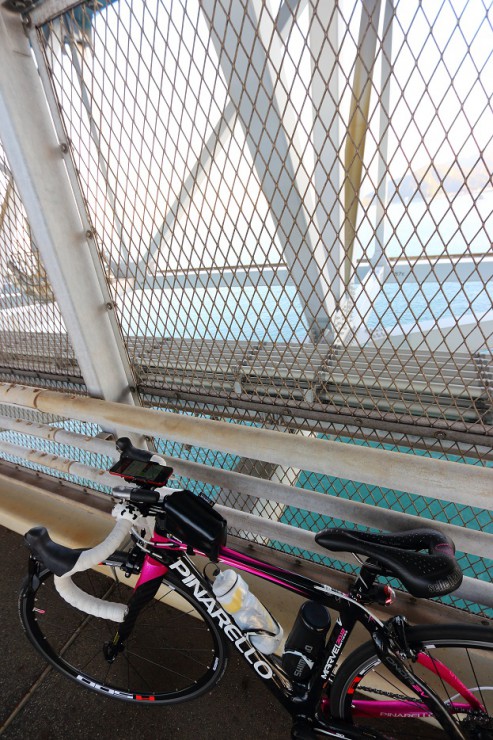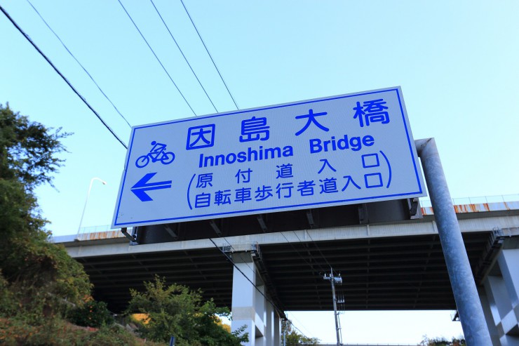 これまで 橋の上に自転車道がありましたが、因島大橋だけは、橋の下を通行します。