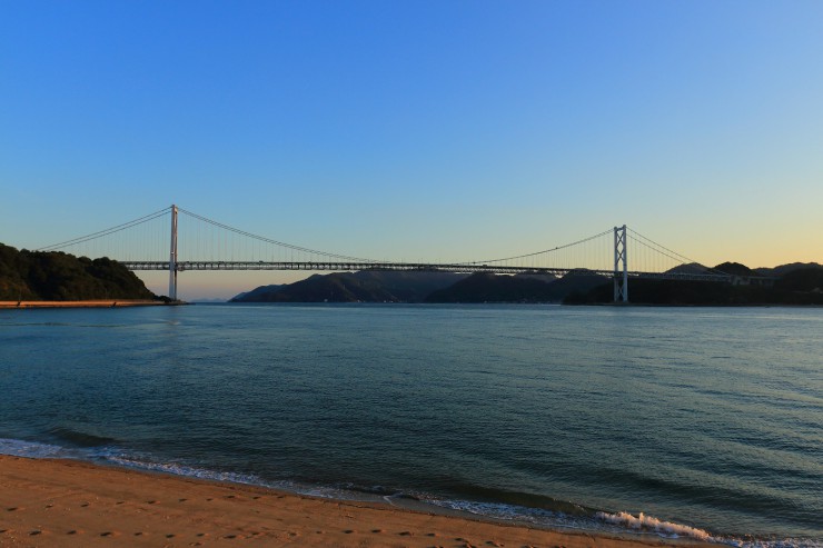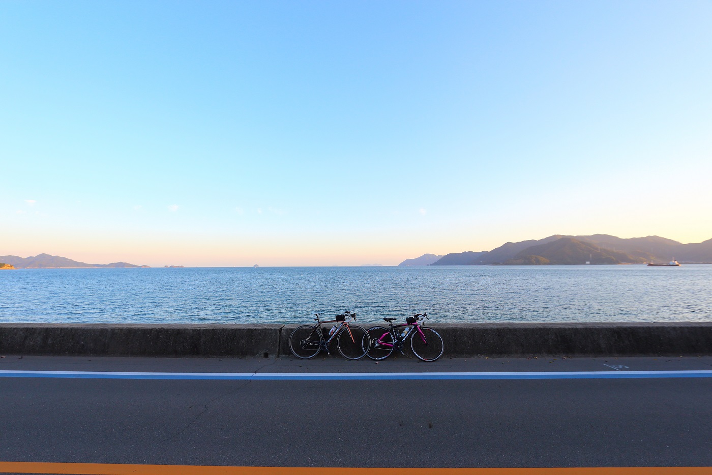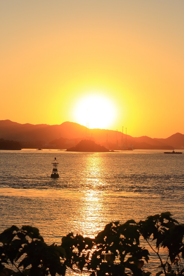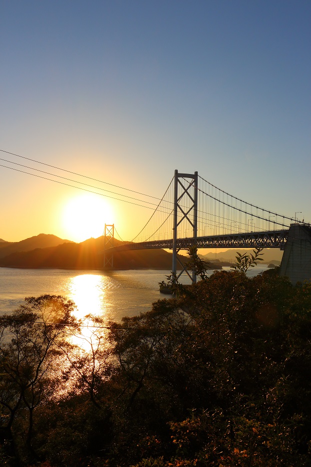 しまなみ海道 自転車横断の旅も、綺麗な夕日と海と共に終わりの時を迎えようとしていますヽ(´A`)ノ