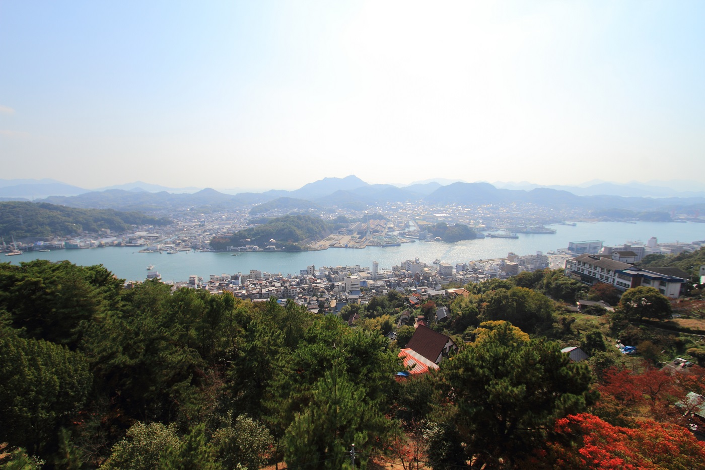橋や、先ほどまで居たホテルや尾道駅など、ここからの景色を楽しんでいると、