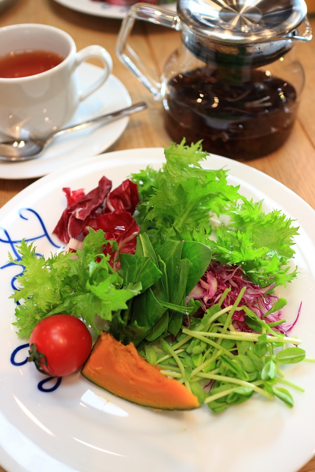 ここでの朝食は、ビュッフェ形式のサラダとパン。