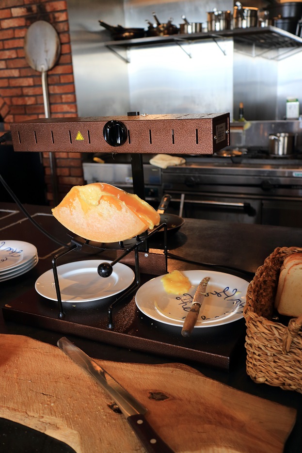 サラダバーとパンのコーナーの後方に、ひっそりとラクレットチーズもありまして、
