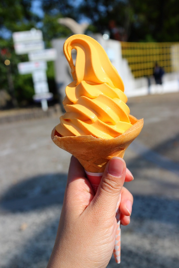 展望台で景色を楽しんだ後は、売店で瀬戸内みかんソフトを食べる。