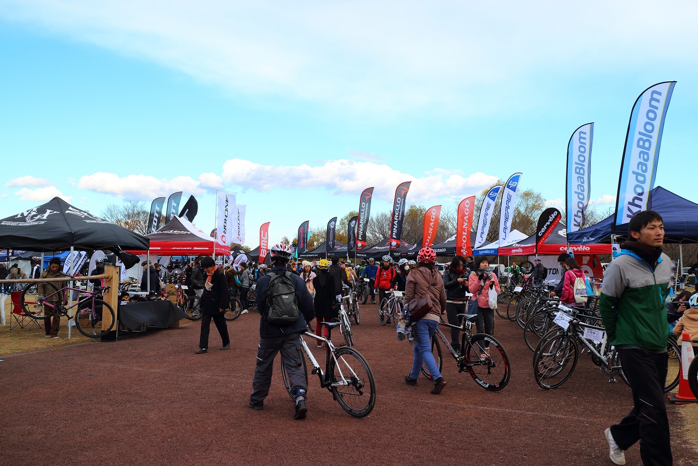 とても広い会場は、沢山の人と自転車で いっぱい。