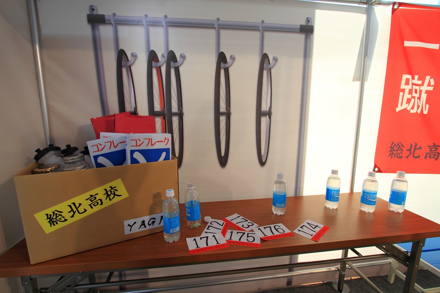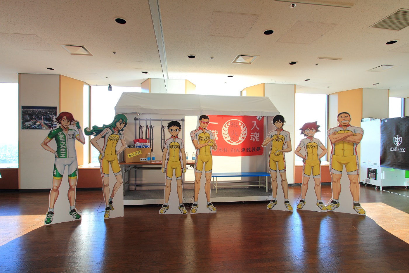 総北高校は、インターハイの選手が控えるテントの演出でパネルが展示され、