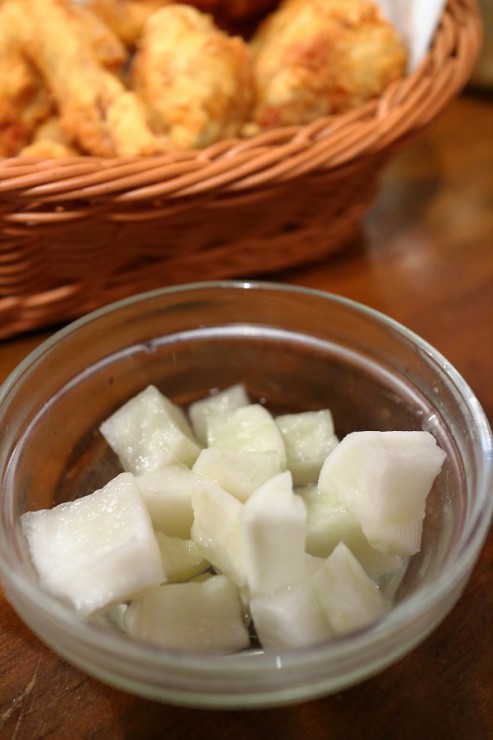 フライドチキンには、大根の酢漬けが付いていて、チキンよりそれの方が美味かった♪