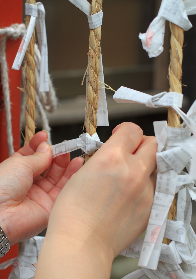通常の おみくじ結び場に、おみくじを結びつける。