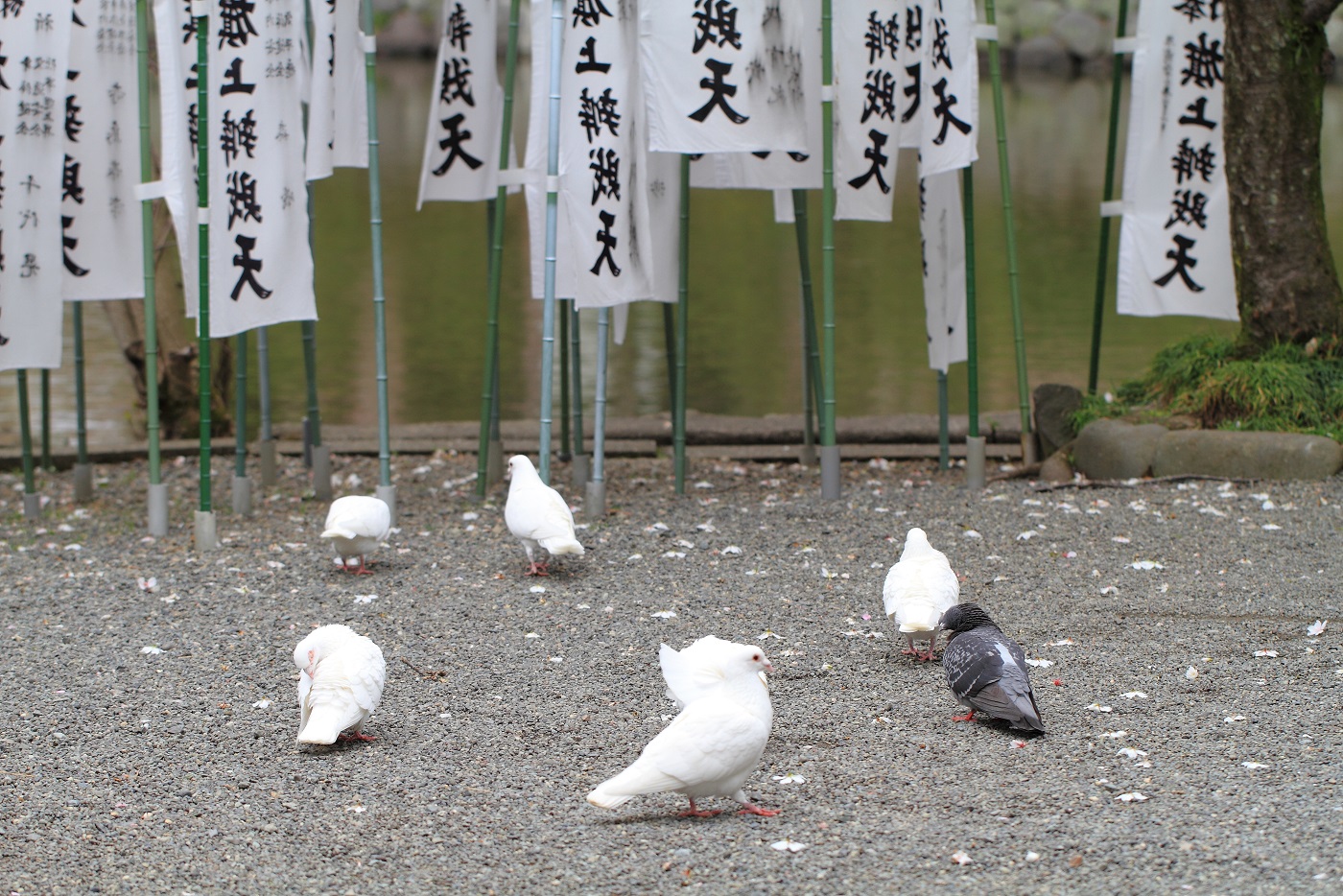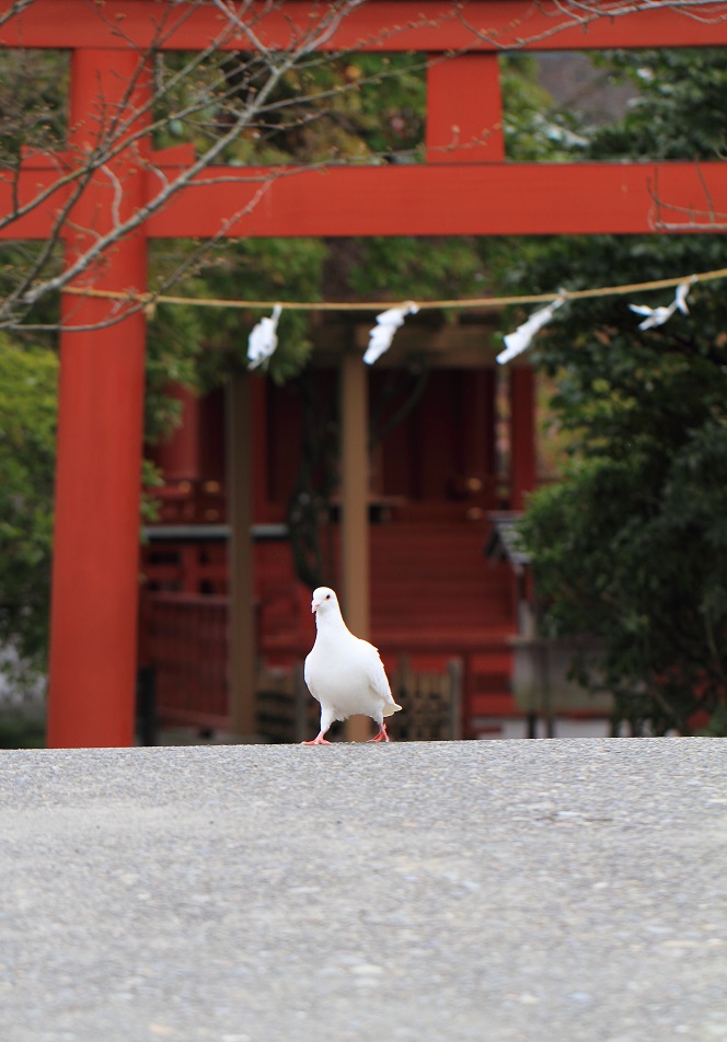 なんでだかは分からないけど、鳩イメージの鶴岡八幡宮で白い鳩を見つけて、