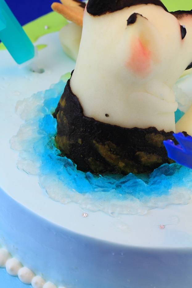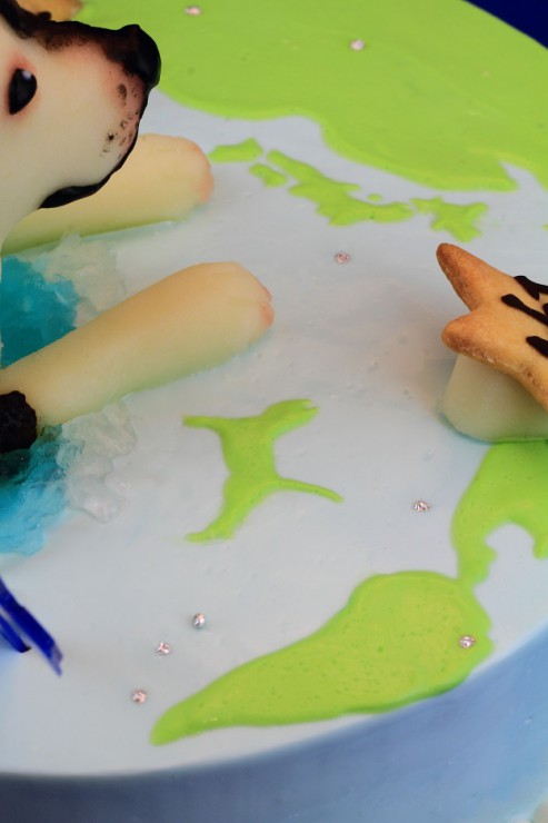 今回は、一度 自分のケーキにも取り入れてみたかったゼリーを使って海の水を表現。