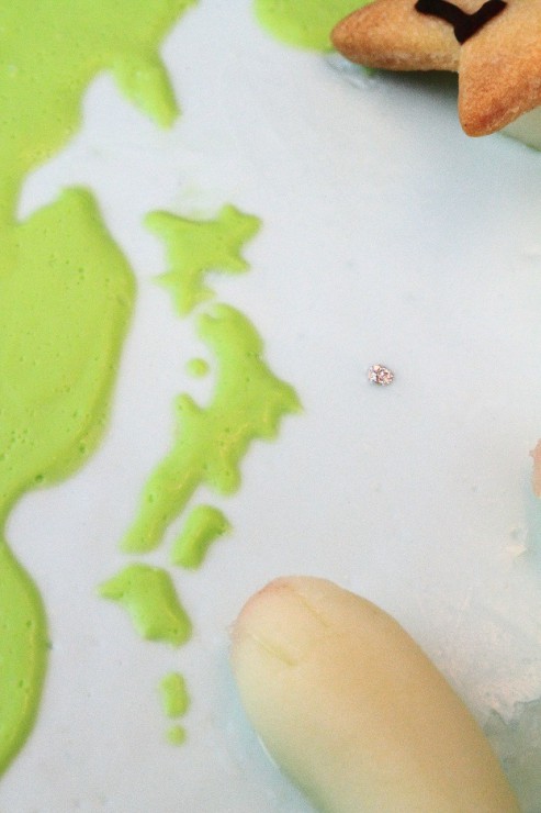 その周りには、盛り上がった水面を表現するゼリーを配置しようと企みました。