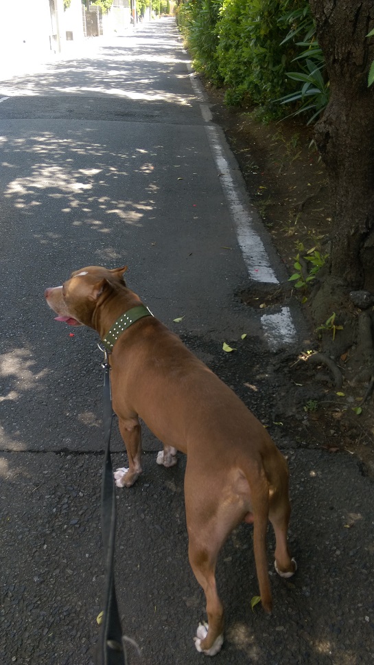 なるべく日差しを避ける様に日陰を伝え歩きしながらの散歩。