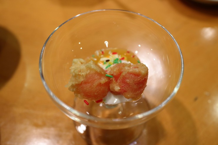 で、本当の最後にスイカの天ぷらデザートで ごちそうさまでした(´∀`)