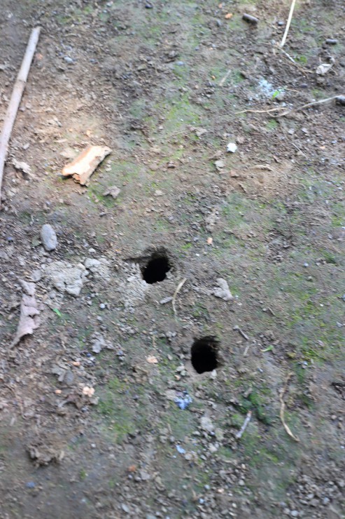 よいしょ!と、腰をかけたペンチの周りには無数の穴があいているではないか(・ω・)?