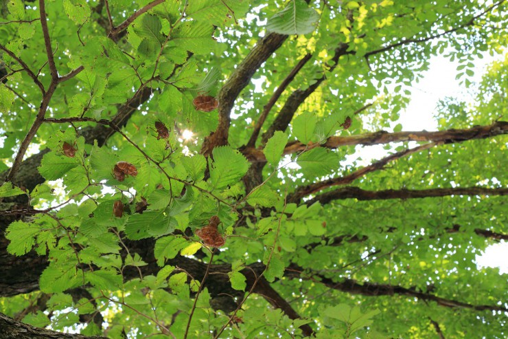 木の枝や葉に、おびただしい数のセミの抜け殻が!