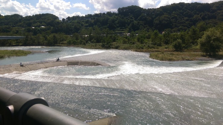 連休前までは雨続きだったので、川の水も多い多摩川。