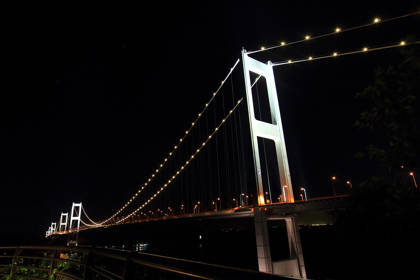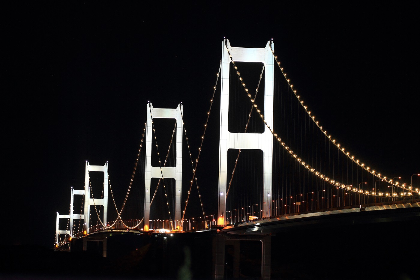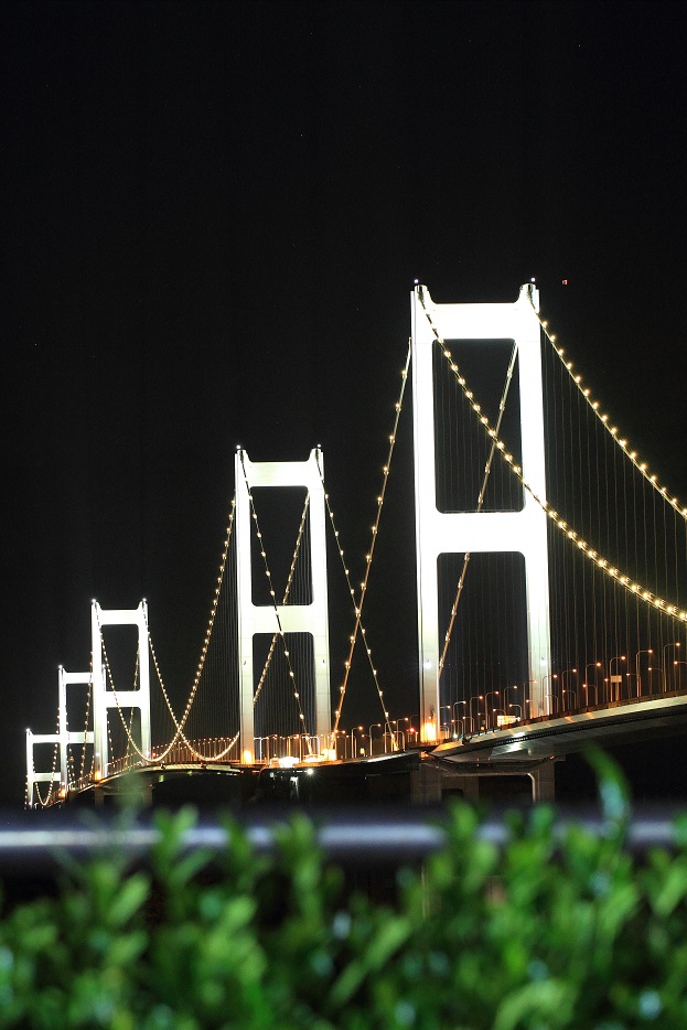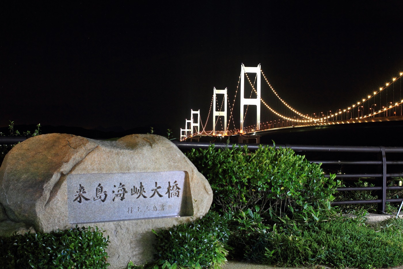 そこで、ライトアップされた来島海峡大橋を眺めながら
