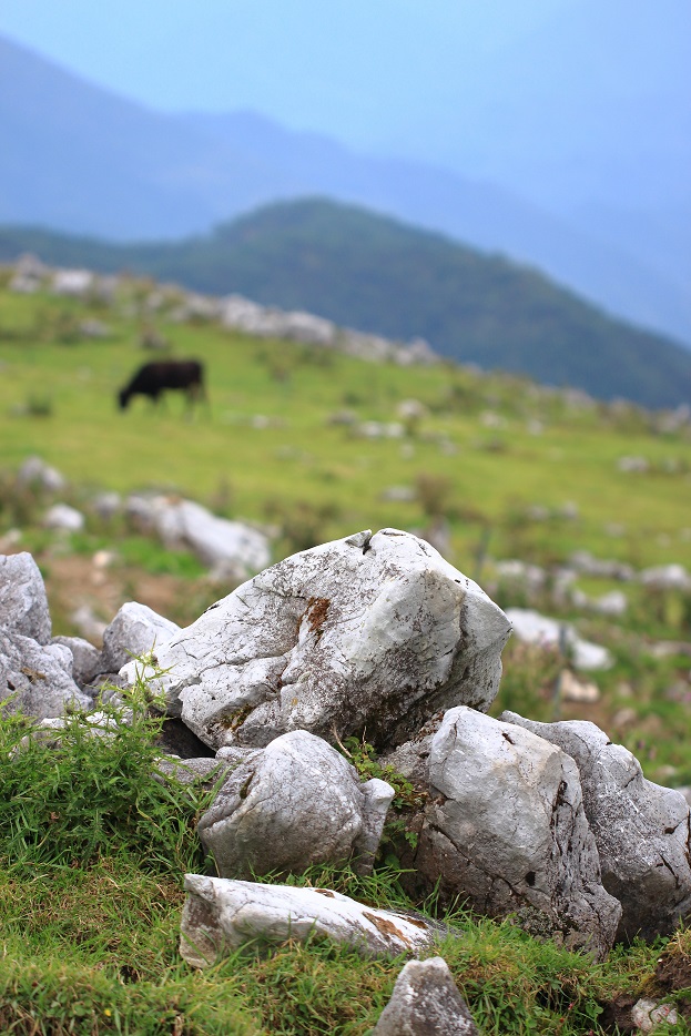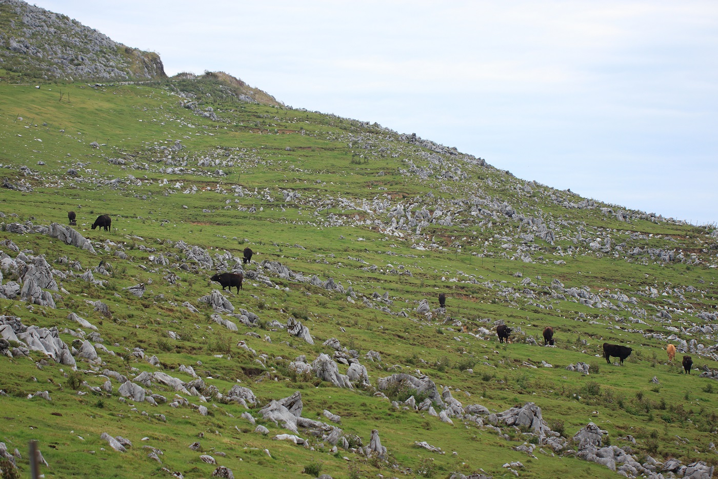 岩がゴロゴロなのに加え、なかなかの急斜面にもかかわらず、沢山の乳牛が放牧されていました。