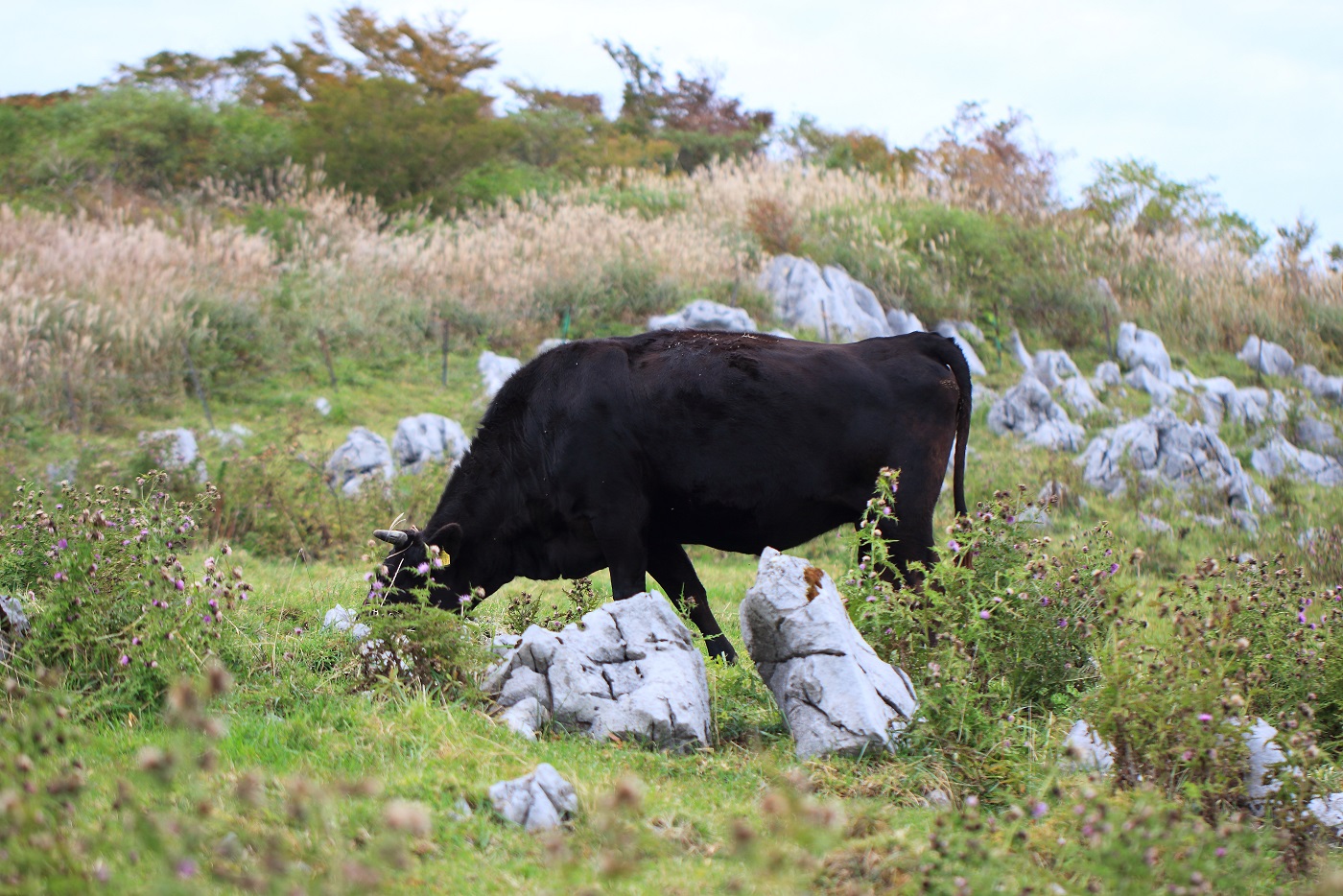 牛には少し、険し過ぎる場所に放牧している気がいたしましたが、