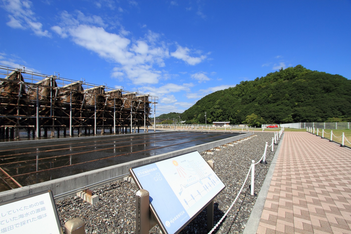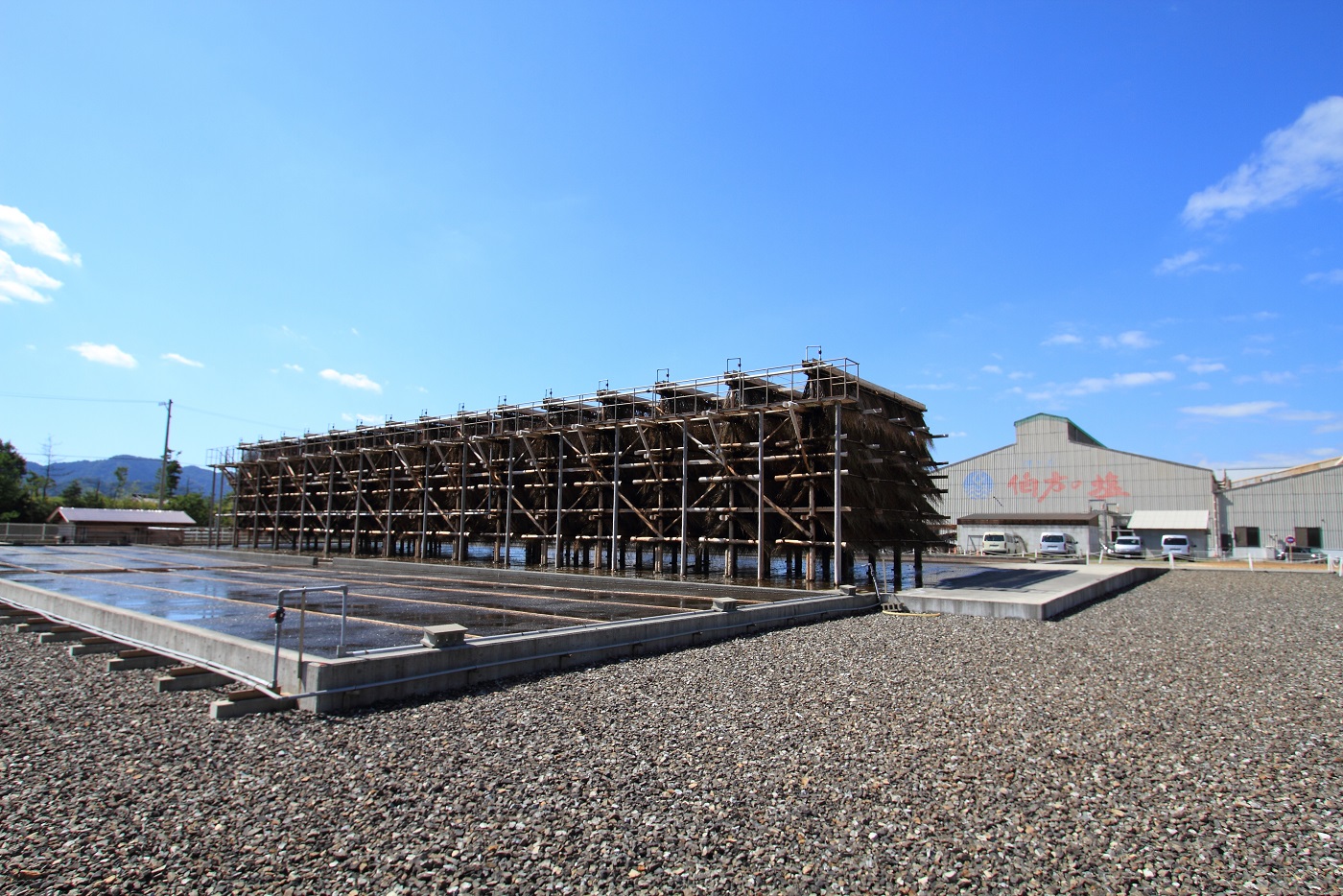 工場の裏手には、 流下式枝条架併用塩田(りゅうかしきしじょうかへいようえんでん)
