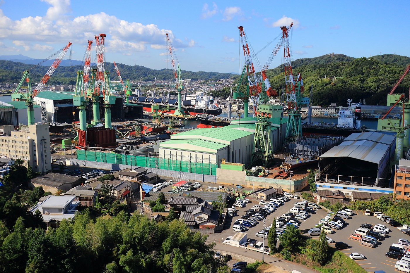 橋の車道からは、海はもちろん今治造船の様子など、景色がよく見えないので、