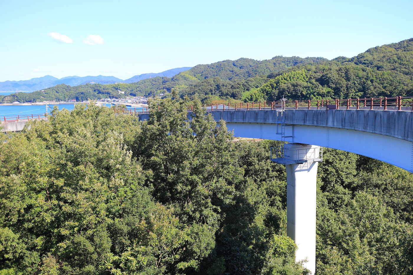 走る路面に隙間が開いているのがスリリングな因島大橋を渡り、