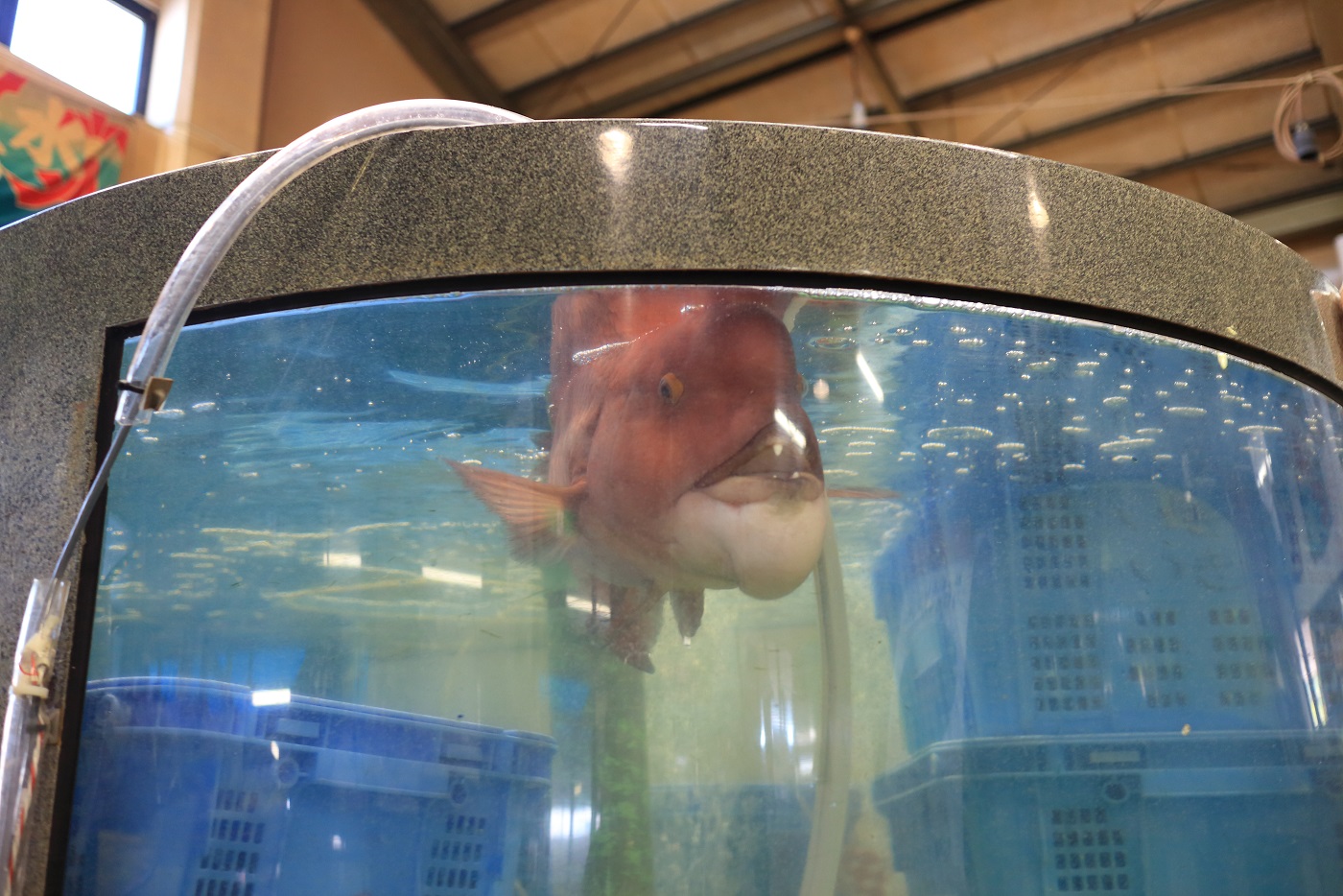 建物の中に居る、看板魚、もぶし(コブダイ)の コロちゃん。