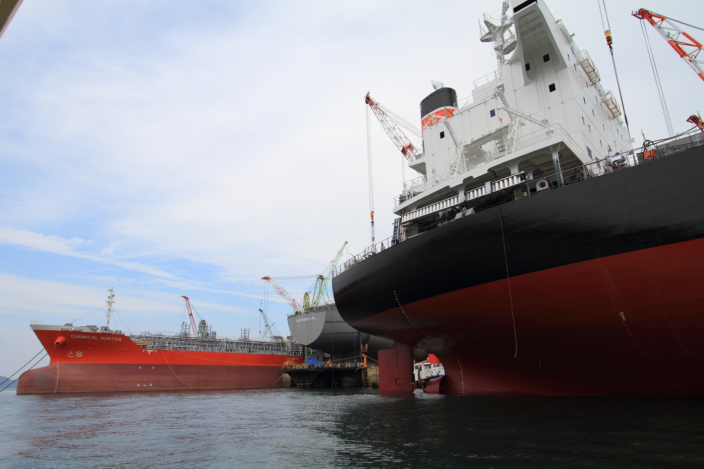 最後は、しまなみポタの時に、来島海峡大橋の自転車用スロープから眺めていた今治造船を、