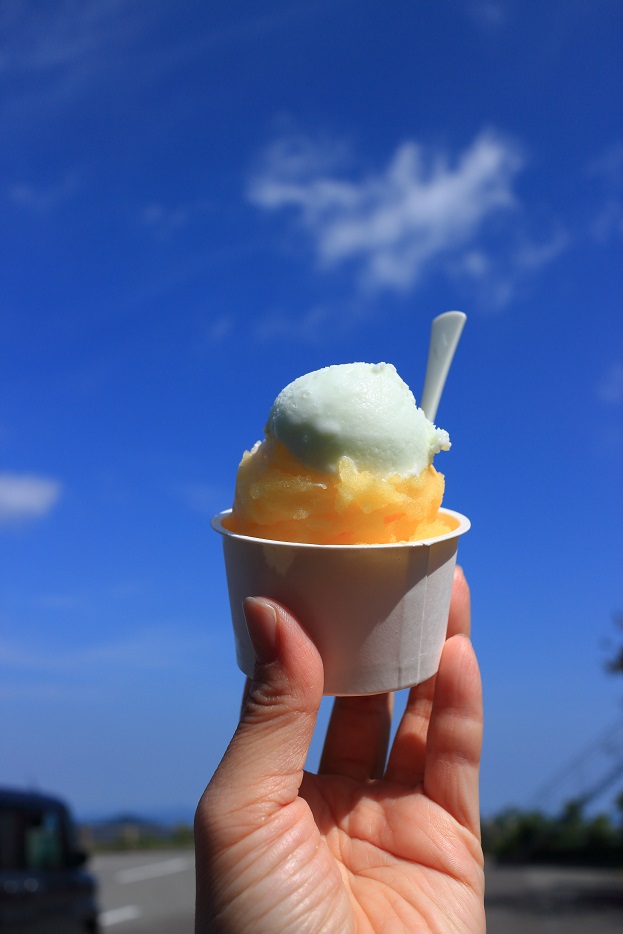 でもそんな一年ぶり、自転車で上って来ないで食べた玉藻塩アイスのお味は!