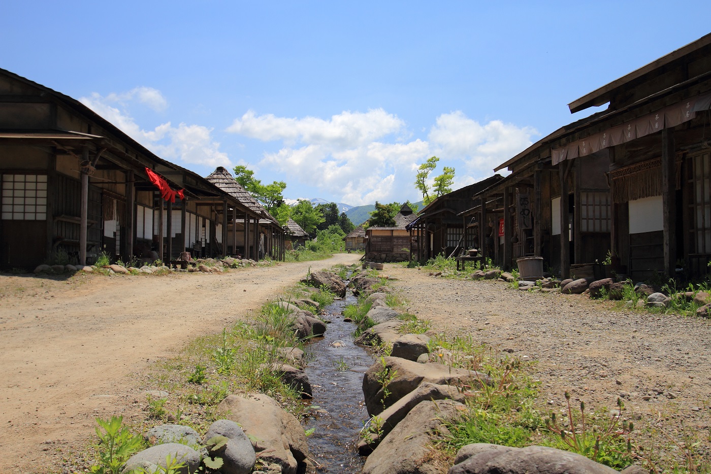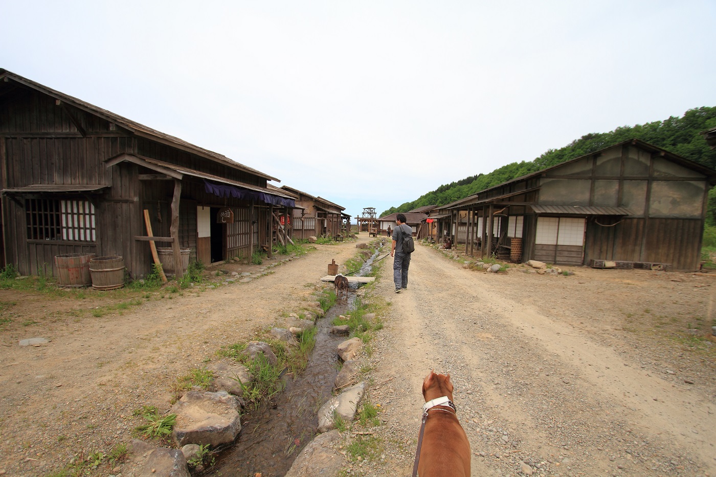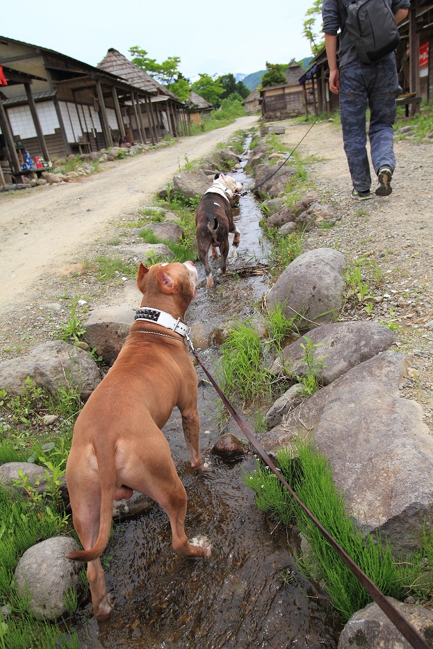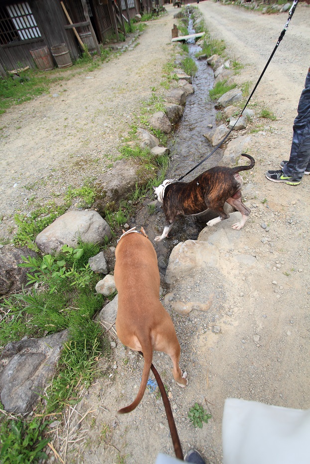 イヌ達は、漁村エリアに流れる小川でジャブジャブしてクールダウン。